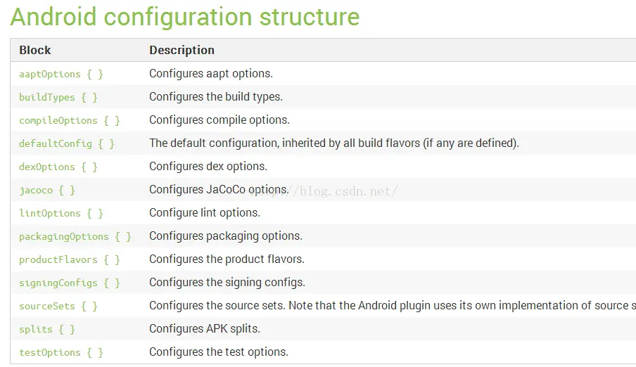 容器的元素是BuildType或者SigningConfig。我们在debug{}要填充BuildType或者