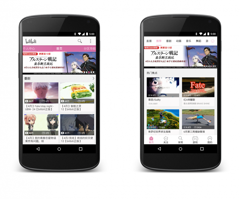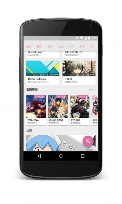 个人认为哔哩哔哩的情况比较特殊:原来进行过 Redesign 的应用有一开始就是 iOS 风格的,也有采用 Android Design 风格,但并不完美的。对哔哩哔哩这种原来是 Android Design 风格,但后期转换为 iOS 风格的 App 进行 Redesign 是一件很有挑战性的事情。于是在对新版进行了一段时间的体验之后,我开始利用新版的特性和部分交互逻辑对哔哩哔哩动画进行基于 Material Design 的 Redesign 尝试。