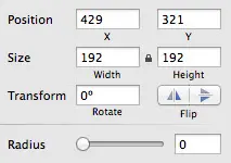 当你改变一个图层的大小时,它的式样元素并不会随之变大变小:一个 10x10的图形上 1px的描边在这个图形被拉伸至 50x50的时候,将仍保持 1px的描边。想要更改图层大小的同时一起更改式样,那就使用编辑菜单当中的缩放工具吧。
