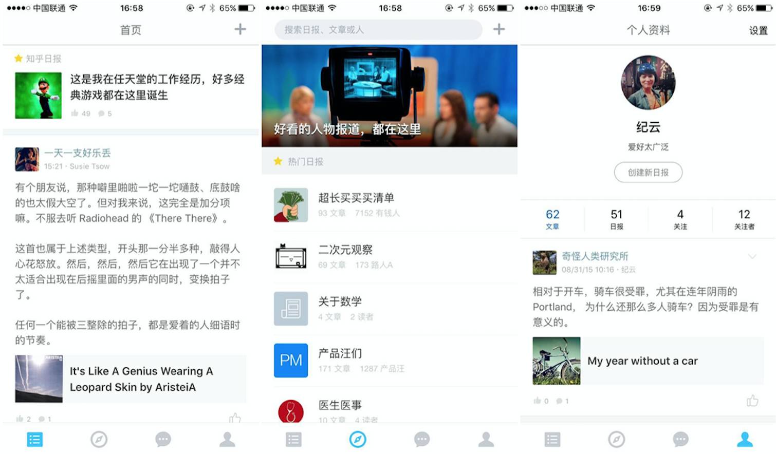 另一个同步发生的变化来自知乎日报。从今年 5 月开始,知乎日报开始了 3.0 版本内测,这个版本的核心逻辑是扩大内容来源,吸引更多人。知乎日报用几个编辑获得几千万用户,现在打算用几千几万个编辑获得几亿用户。最终发布的版本改名为「读读日报」,它将内容生产门槛进一步降低,用户不需要自己写内容,只要推荐就可以。人的推荐能力,在黄继新看来,是普遍存在的。某种意义上说,「人人都是主编」。(了解读读日报点这里)