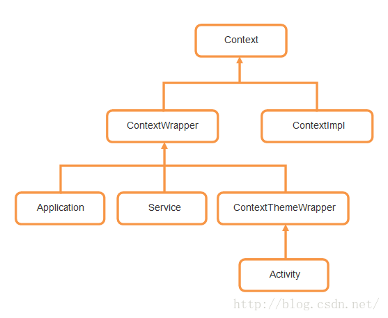 Context的继承结构还是稍微有点复杂的,可以看到,直系子类有两个,一个是ContextWrapper,一个是ContextImpl。那么从名字上就可以看出,ContextWrapper是上下文功能的封装类,而ContextImpl则是上下文功能的实现类。而ContextWrapper又有三个直接的子类,ContextThemeWrapper、Service和Application。其中,ContextThemeWrapper是一个带主题的封装类,而它有一个直接子类就是Activity。