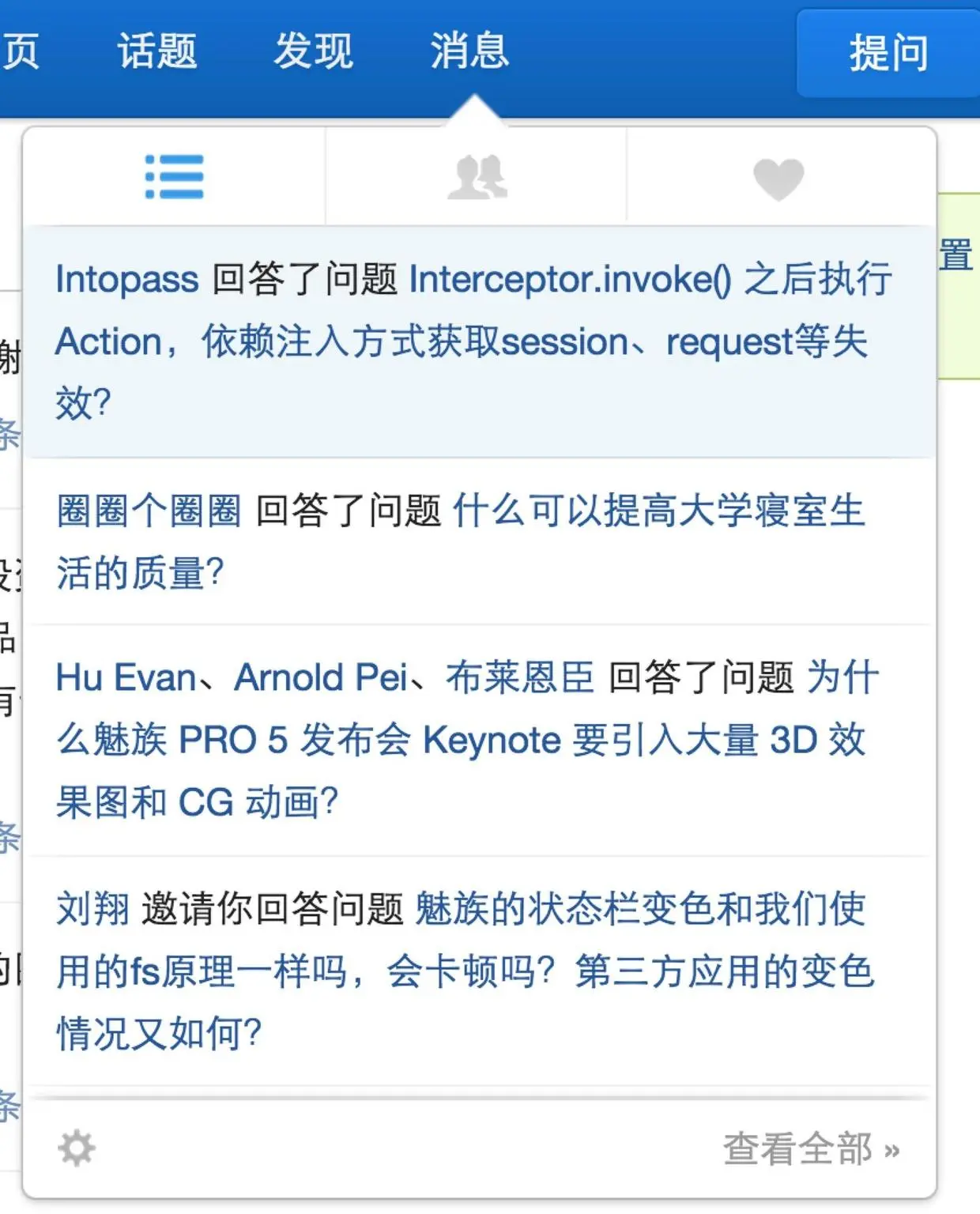 知乎的消息比简书的提醒有过之而无不及,知乎会对多条相似的消息进行聚会,以达到减轻用户阅读压力的体验。