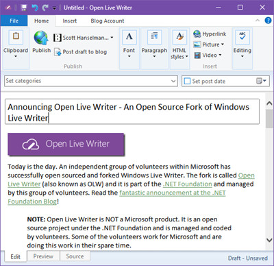 源代码。Windows live Writer 即(WLW) 是一个免费的桌面应用程序,您可以使用它轻松发布丰富的内容到您的网络日志。使用 WLW,您可以轻松地在所有日志服务上共享照片和视频 — Windows Live、WordPress、Blogger、Live Journal、TypePad 等。