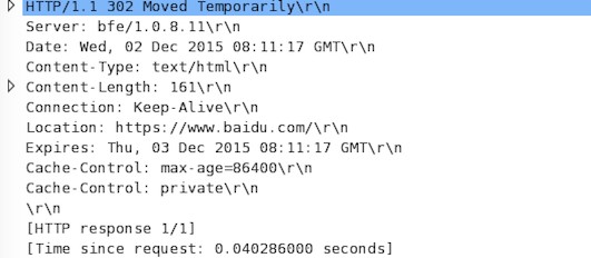 我们报文中涉及到了一些关于cache的字段,还有就是我们状态码返回的是302,而不是200,表示的是我们的访问的URL,暂时被重定位到了另一个地址,然后在下面的Location中包含了这个地址,之后,我们在下一次的访问中将会对这个提供的地址进行访问。