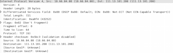 数据报中有GEOIP目的地和源地址的,通过名字应该可以猜的出来是Geolocation IP,基于IP查询的地理位置。