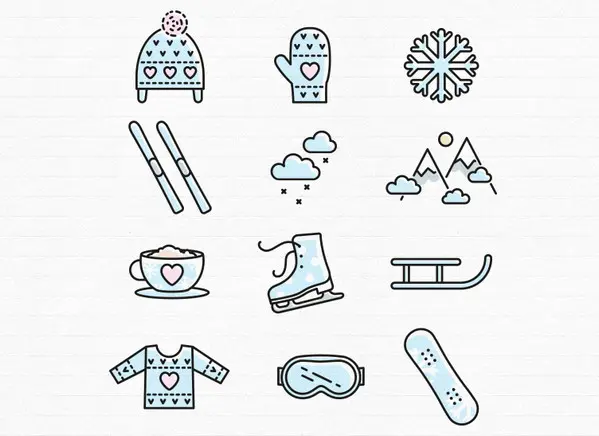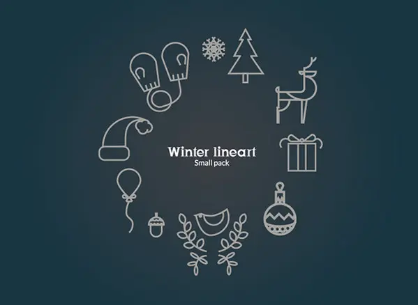 这是一组尺寸并不固定的矢量线性图标,线条清晰柔和,配色时尚。这套线性图标拥有良好的兼容性,应该可以适用所有同冬天、圣诞、新年相关的设计中去,融入感和自由度非常高。