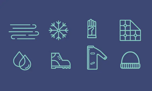 设计师在设计这套冬季主题图标的时候,选择了蓝色的基调。图标类型选用符合时下设计趋势的线性图标。