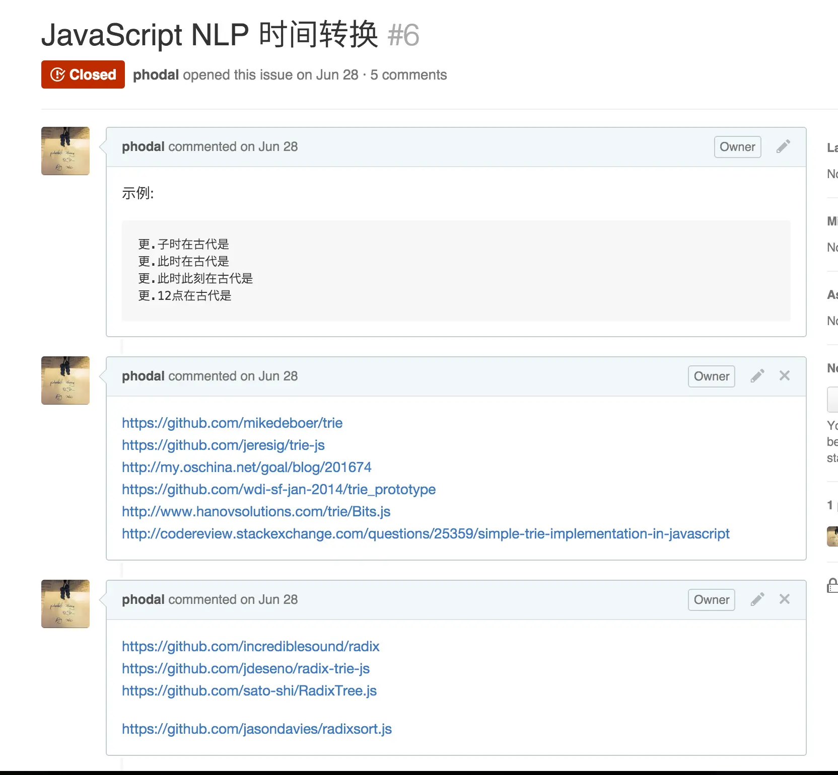 半年时间过去了,我的Issues列表里已经关闭17个Issues,大部分是已经完成的idea。而在Open的列表里还有着12个还没开始、或者只进行了一部分的ideas。稍微看了一下,每个Idea大概隔了七天,毕竟是可遇不可求的。
