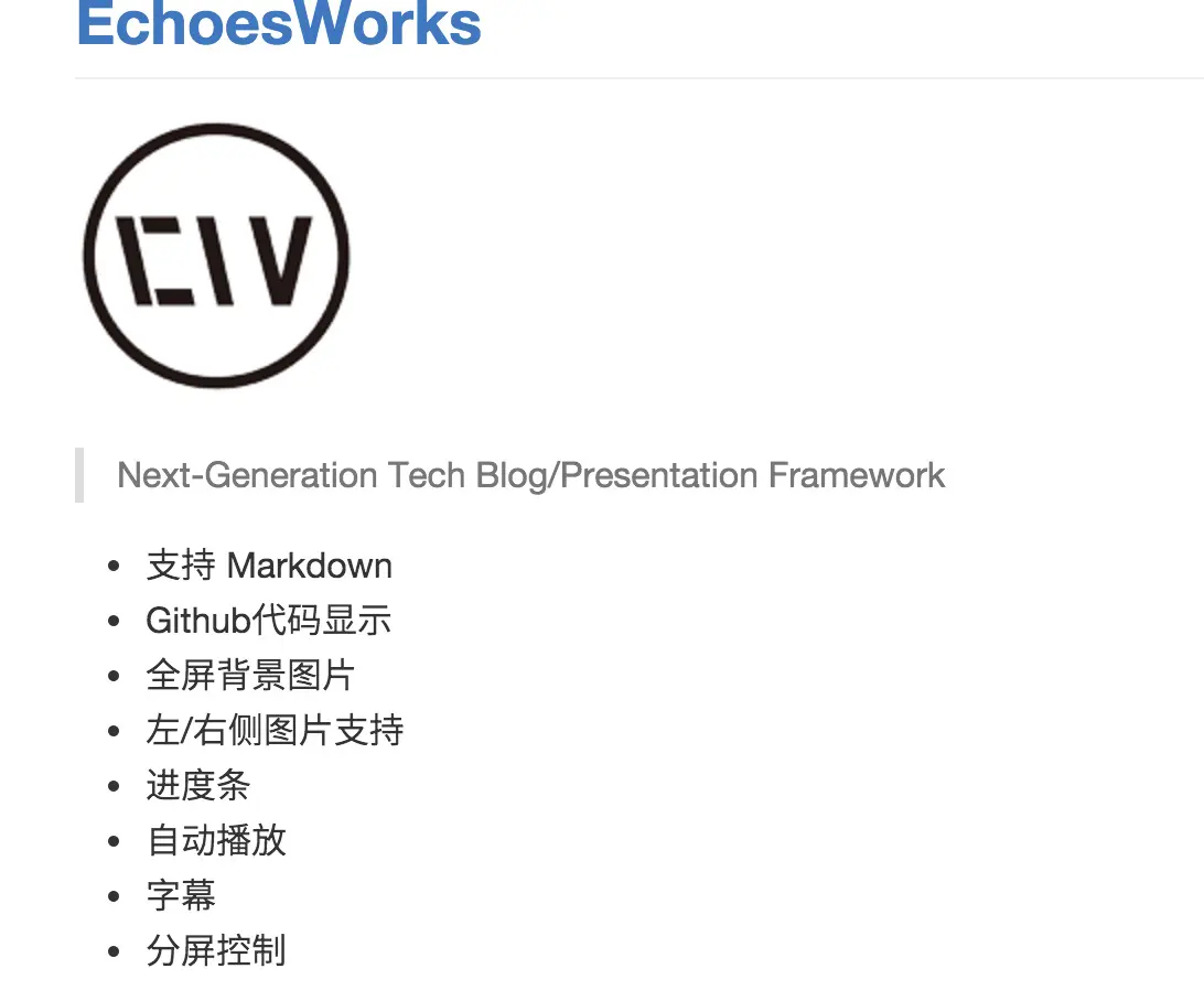 每个项目里,都会有一个简单的介绍,如EchoesWorks: