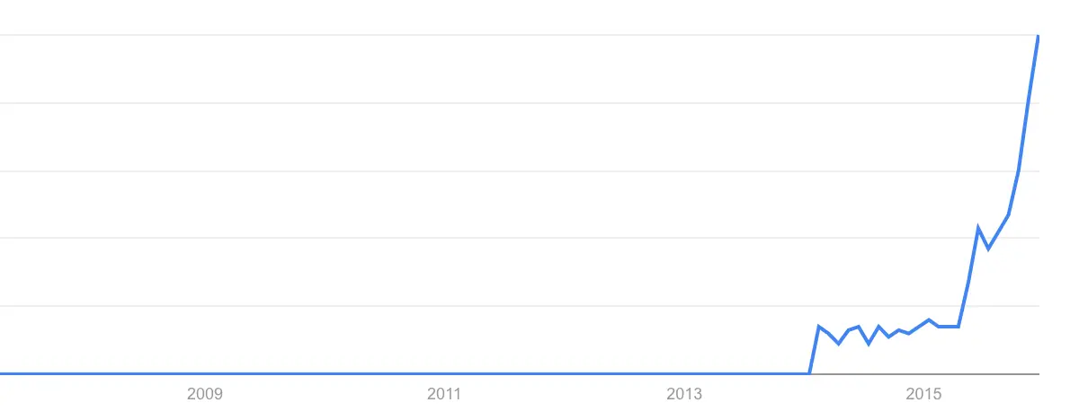 The release of 1.0 was a great boost to the project’s adoption. The release post stayed on HackerNews front page for quite a while, gathering more than 300 upvotes. The GitHub star count surged, and Vue has stayed in the GitHub JavaScript trending list almost every day since then. In Google trends, the curve for Vue.js is showing strong growth and recently surpassed Backbone and Ember.