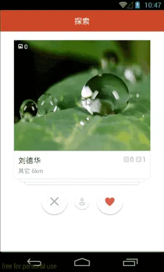 android-card-slide-panel 是一个模仿探探首页卡片左右滑动效果的 Android Demo, 滑动流畅,卡片view无限重生。GitHub 地址:t.cn/RUkjmEQ