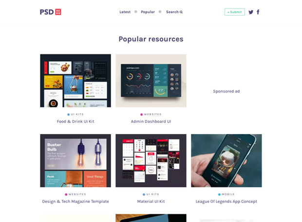 PSD Repo 或许你听过,但可能对它不是那么熟悉,无论如何,它收录了许许多多可能是工作上会用到的 PSD 素材,包括按钮、Mockups、图标、行动装置、用户接口以及网页设计,这些设计有非常美观的预览图,也有下载按钮可引导至相关链结。