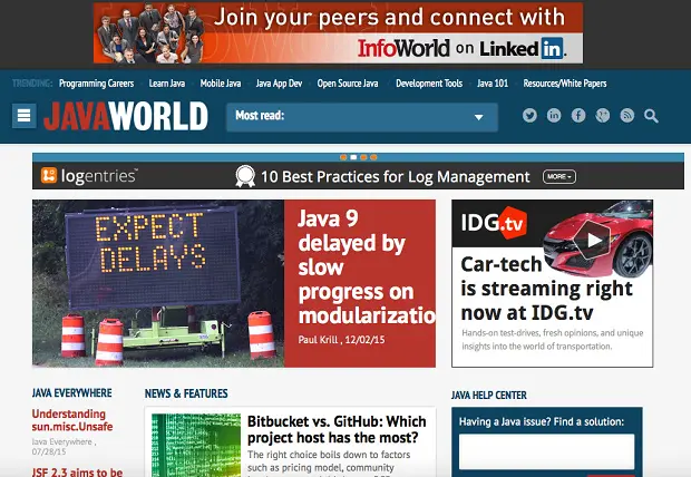 Javaworld是一个专为Java开发者、架构师以及经理设立的最早的独立站点。因其品质卓越,享有很高的声誉,因而每月都有超过100万的追随者。Javaworld 的使命是通过提供实用的、实时的Java相关的新闻和教程来指导和鼓舞他们的读者。