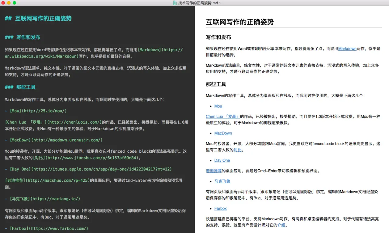 Markdown语法简单,纯文本性,对于通常的超文本元素的直接支持,沉浸式的写入体验,加上众多应用的支持,才是互联网写作的正确姿势。