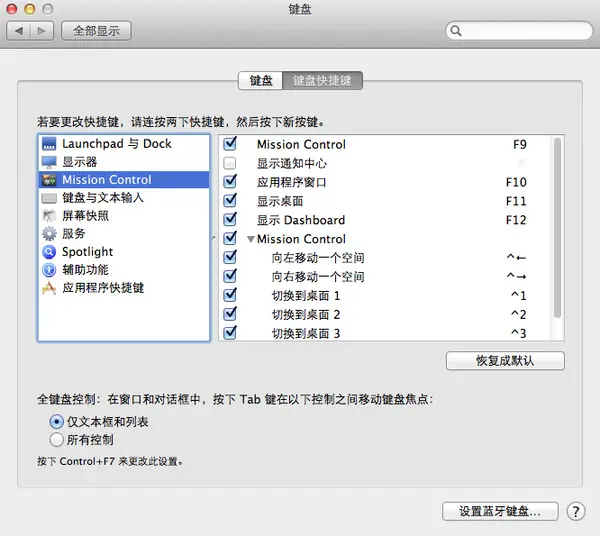 24. 对于程序员来说熟练掌握快捷键是很有必要的,下图可以自定义快捷键,就比如我就把 launchpad 绑定到了 F1 上(因为外接显示器的话好像还真没什么办法打开 launchpad?)mission control 是 F9