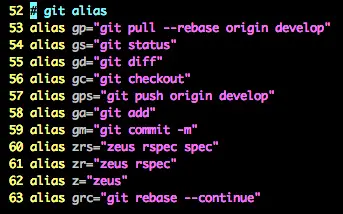 29. 我是个懒人…所以…请看我的 git alias…用惯了以后去服务器配东西(没有 alias)就各种不适应= =