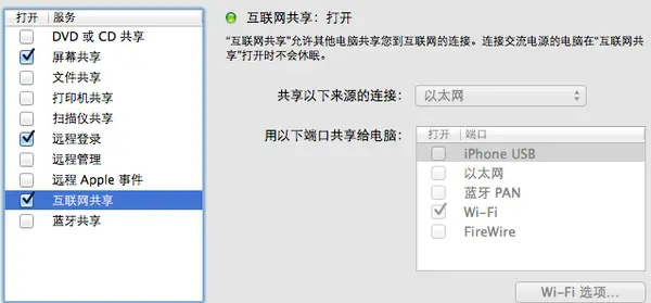 19. 勾上这个「互联网共享」就可以把以太网接口的网络共享成 Wi-Fi 了……