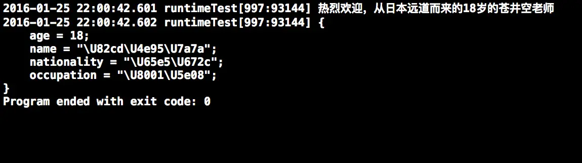 NSLog(@"热烈欢迎,从%@远道而来的%@岁的%@%@",cangTeacher.nationality,cangTeacher.age,cangTeacher.name,cangTeacher.occupation);