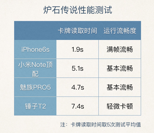 《炉石传说》的测试我相比过去再次进行了细分,从卡牌界面读取速度和游戏内运行流畅度两方面来分别进行测试,卡牌界面读取速度比较考验内存和闪存的读取速度,而游戏内操作动画的流畅程度则考验了 GPU 和 CPU 的处理能力。