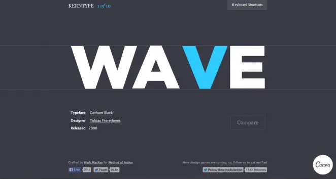 Kerning is one of those design concepts that you really need to practice yourself — both to understand how it works and to get good at it. Aside from starting to kern type in your own projects, you can try out your kerning skills (and get feedback) with a web game called Kerntype: