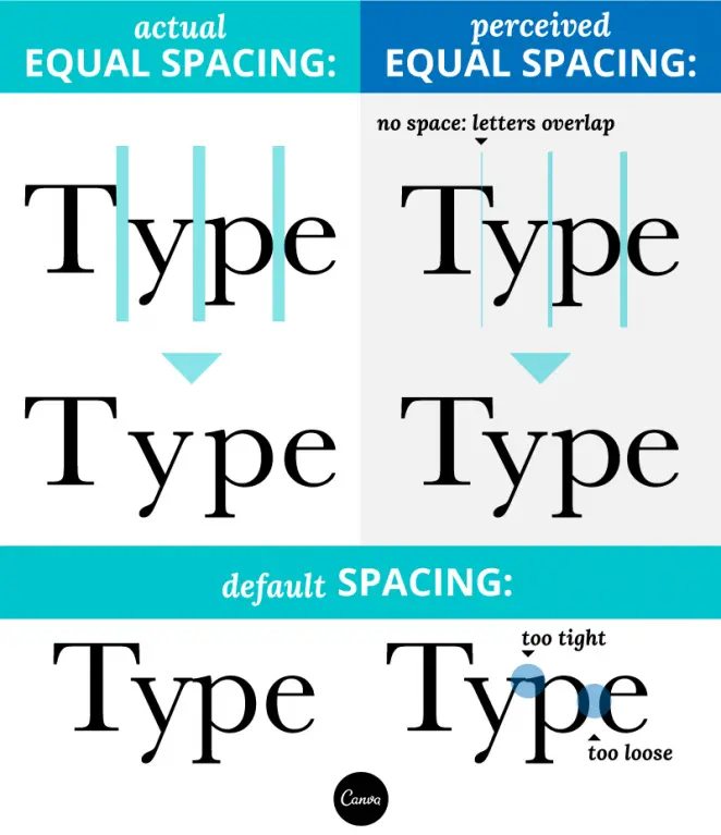 So since readability and legibility should be a top concern for typography in any design, when in doubt, it’s best to kern letters slightly looser to avoid giving viewers eyestrain or any opportunity for misinterpretation.