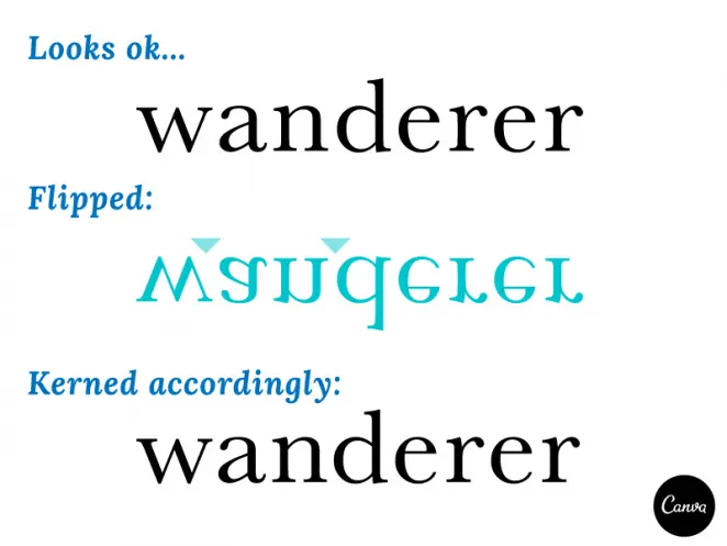Sometimes it’s hard to spot where you need to make kerning adjustments, because your brain wants to look at what the letters say. One way to shift your focus is to flip your type upside down — this helps you zero in on the shapes of the letters and the spaces they create, rather than getting distracted by the word itself.
