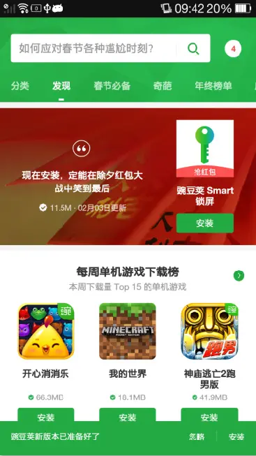 可以看到,系统的通知栏和app界面融为一体,妈妈再也不用面对黑乎乎的通知栏了。有关 Translucent System Bar 的特性就暂且介绍到此。