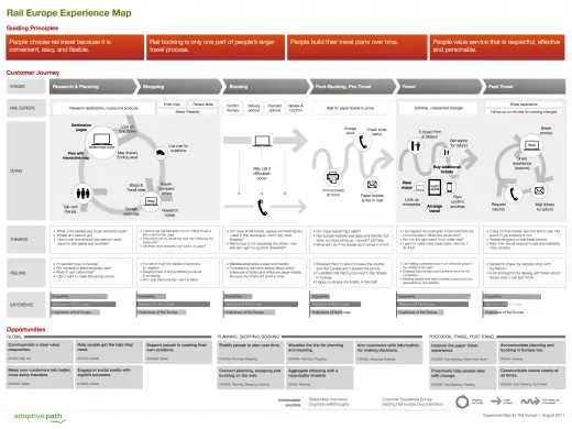 3)体验地图——从用户场景更进一步,体验地图记录围绕单个交互的所有条件,包括情感和外部环境。“令莎莉生气的滑雪旅行以她的腿部骨折为结束,作为季节性购物者,莎莉必须尽快进行她的圣诞购物了。”