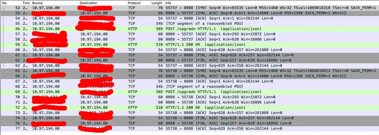 事实上在HTTP 0.9, HTTP 1.0协议的时代,每次HTTP的请求,都需要先经过TCP的连接,然后才开始HTTP的请求,这样一个流程图,我们可以通过抓包看到: