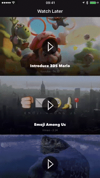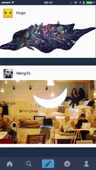 2)为了让整个效果更接近是一个 App,第一个 Tab 的是加入了动态Spring 效果的 TableViewCell,而后面两个 Tab是假的,仅仅只是 UIImageView😂;