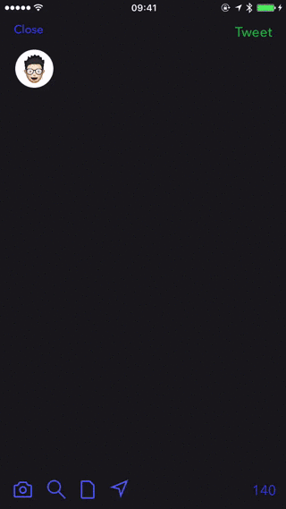 1)限定 UITextView 输入字符,跟 Twitter 微博一样做140字的限制,然后就无法再输得动了,一开始是 UITextField 尝试,发现不能换行,屁啊,赶紧换到 UITextView 来;