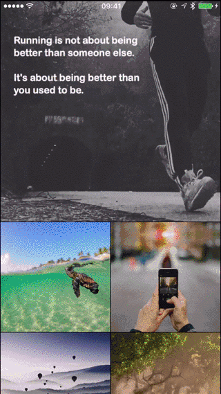 1)啊啊啊啊,这个效果其实挺烂的,但是 UICollectionView 的平滑转场我们应该经常看到,特别是 List 和 Details 之间,比如商品列表和商品详情,新闻列表和新闻全文;