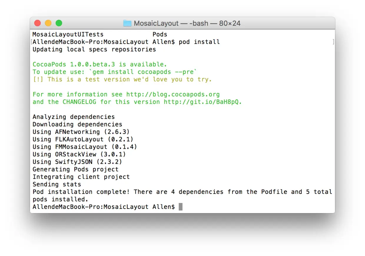 2)学会了用Terminal 安装 Pod,使用开源项目;