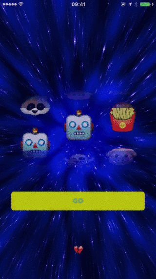 3)如果第一列的 Emoji == 第二列 && 第二列 == 第三列,那么就会出现 Bingo!的结果,反之都是💔,GIF演示中的 resultLabel layout 不太对,后来修复了,因为要重新录到三个一样其实概率还是很低的,当然这个概率是可以设定的;