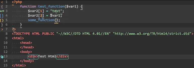 该插件提供行数列高亮的各种配对的语法符号。(愚人码头注:就是将配对的括号等显示在行数列上)