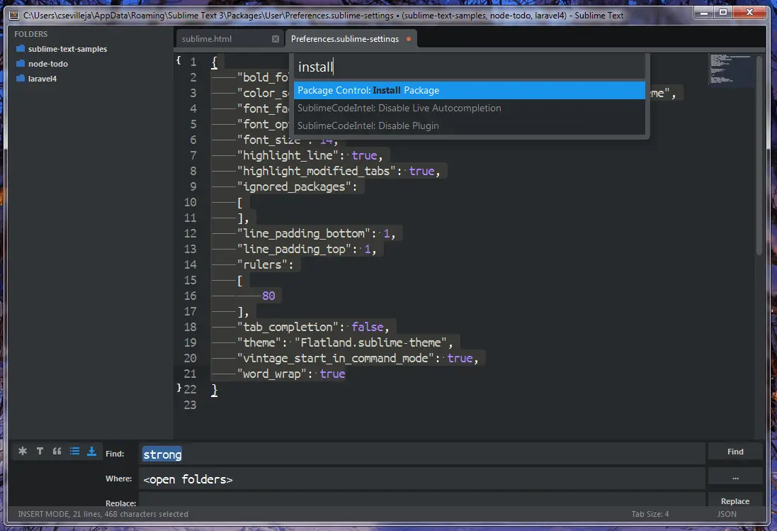 代码片段是Sublime Text的另一大特点。您可以使用预装的,也可以自己创建,或安装具有代码片段的包。你所要做的就是输入一个定义了代码片段的文本,它会扩展到你的代码段。