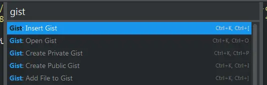 使用方法:打开命令面板,并且键入gist。您也可以使用所显示的快捷方式。