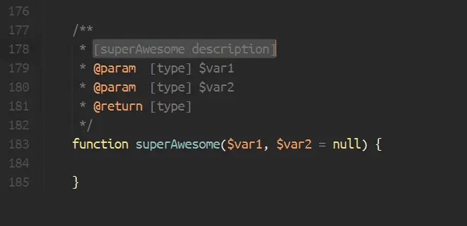 一个真正简单的方式来轻松地创建许多语言包括JavaScript,PHP和CoffeeScript的文档块。只要在函数的上面输入/**,按Tab就可以了。DocBlockr会观察函数需要的变量名和类型,并创建文档块。