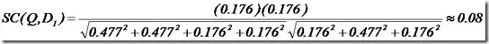同样我们把查询语句看作一个简单的文档,也用向量来表示。