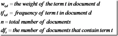 这仅仅只term weight计算公式的简单典型实现。实现全文检索系统的人会有自己的实现,Lucene就与此稍有不同。