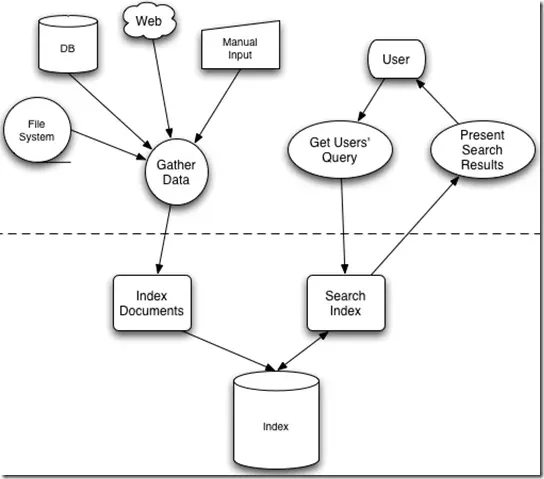 下面这幅图来自《Lucene in action》,但却不仅仅描述了Lucene的检索过程,而是描述了全文检索的一般过程。