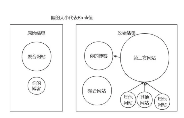 与此同时,还可以在一些Rank更高的网站上粘贴自己的文章,这是我最近在尝试的。但是这招只对于Google、Bing来说是有效的,对于百度来说,你懂的钱多就行了——从不指望百度可以从SEO中获取一些好处。并且在这些网站上粘贴上原文链接,那么依据Page Rank就会有下面的结果: