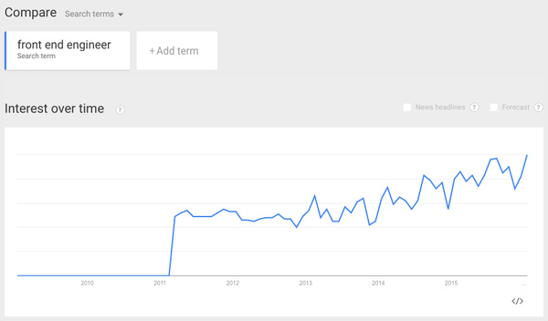 过去几年前端工程师的可视化增长趋势 by Google Trends