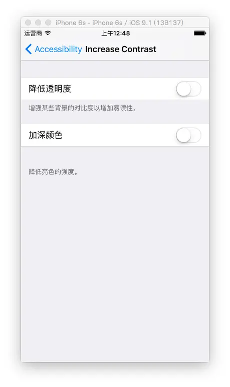 【iOS 开发】分享一个被误认为是 bug 的东西 KyXu201 2016-03-05 1,116 阅读1分钟 看着像bug的情况 正常情况 注意第一幅图,『收藏』Tab按钮和右上角的『垃圾桶』按钮,是灰色的(本应该是白色的)。出现这种情况,没有任何代码的问题 (除非你故意把它设置成灰色)。 加深颜色 如上图,设置->通用->辅助功能->加深颜色,这个设置项,如果你打开了(自己常用的真机,很可能是打开的),纯白色按钮就会变成灰色。其他颜色没试过,但是提醒大家,做类似测试的时候,确保你已经把上面这个选项关掉了。
