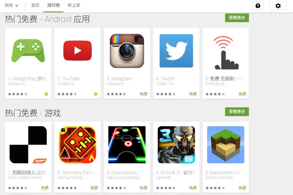 一方面国外谷歌服务器已经全部不可用了(几乎所有IP被定向封杀),另一方面这也是在华运营应用商店的政策规定。4 因此也只会有中国区内容