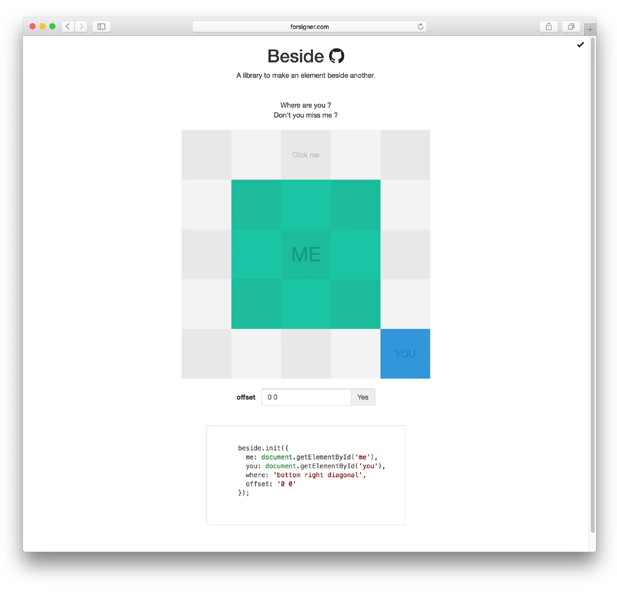 这个类库我给它取名叫做 beside,意思是【在旁边】,这也是 beside 的核心功能,让一个元素放置于另一个元素旁边。