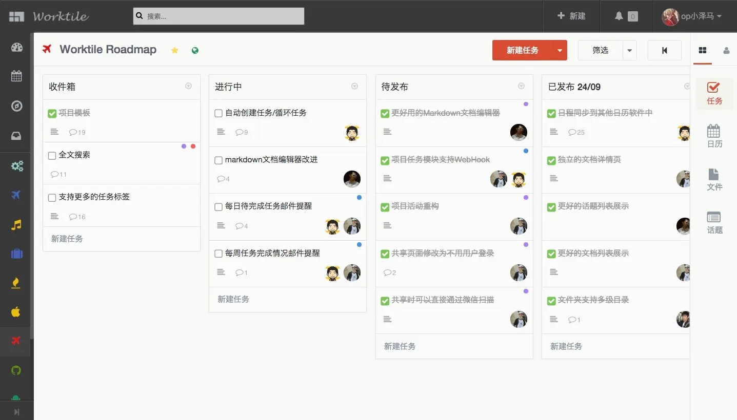 提倡通过任务驱动来连接团队在执行项目的过程中的事和事,人和事,人和人,可以根据公司不同的部门创建不同的项目。得益于 Worktile 的看板式任务列表和不同层级权限管理机制,成员分工明确。清晰明了,每一个功能模块都有相应的负责人,与程序猿PK,有理有据有节操!