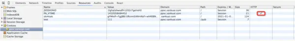 凡是httpOnly类型的cookie,其 HTTP 一列都会打上√,如上图中的PA_VTIME。你通过document.cookie是不能获取的,也不能修改PA_VTIME的。