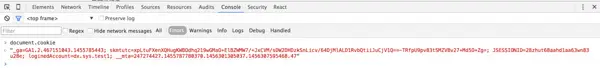 JS 原生的 API提供了获取cookie的方法:document.cookie(注意,这个方法只能获取非 HttpOnly 类型的cookie)。在 console 中执行这段代码可以看到结果如下图: