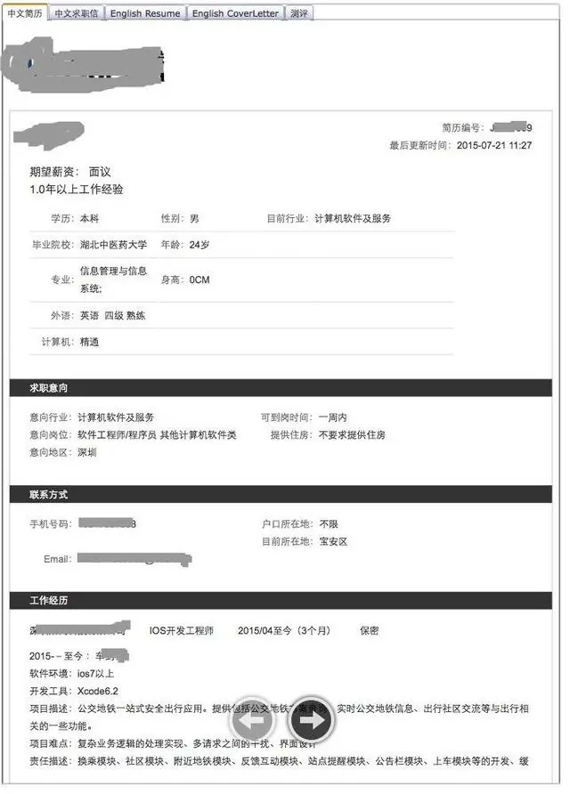 某勾生成的简历还是可以接受的,毕竟是专做互联网的,但是你从一个传统招聘平台上生成的简历,我就完全接受不了~